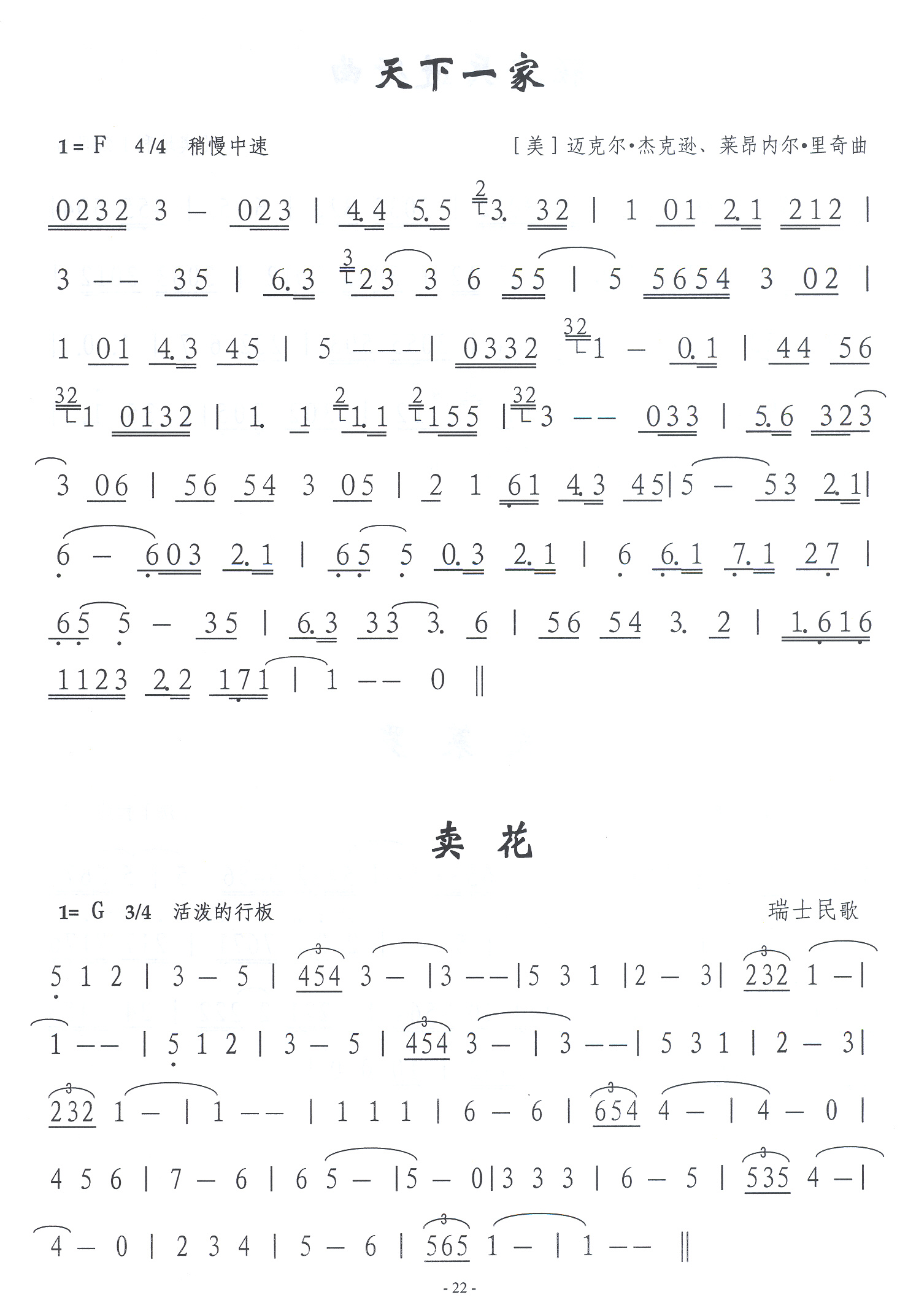 天下一家 简谱 曲谱