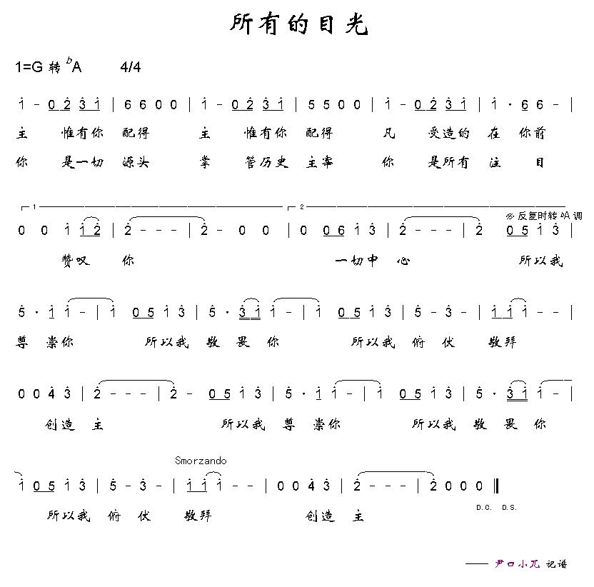 所有的目光 简谱 曲谱