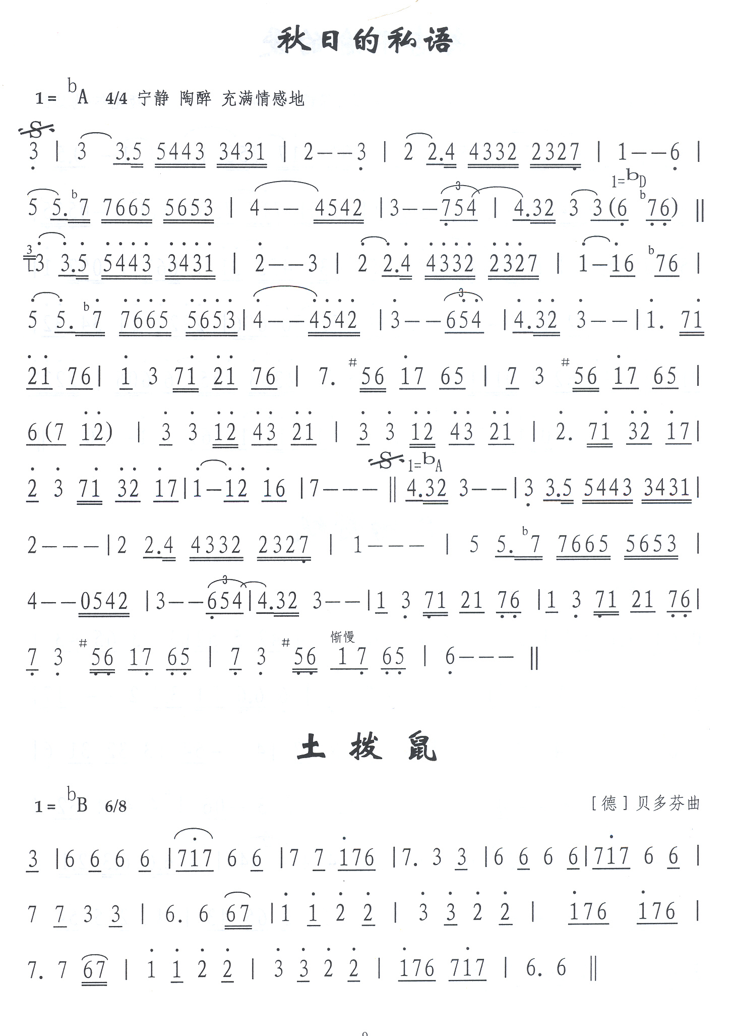 秋日的私语 简谱 曲谱