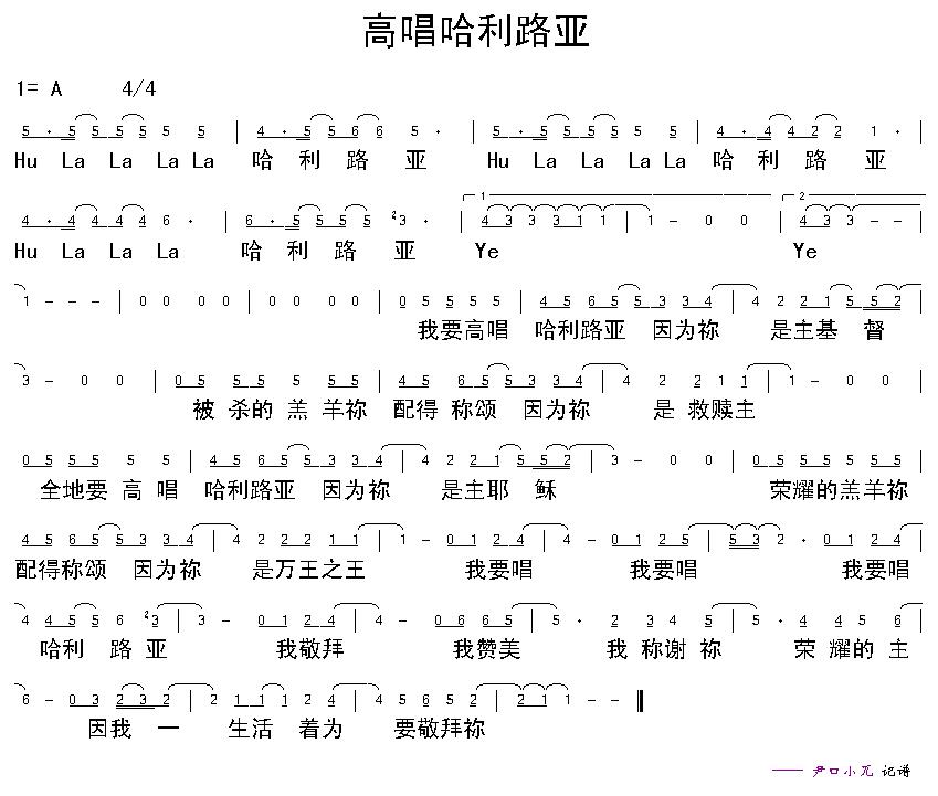 高唱哈利路亚 简谱 曲谱