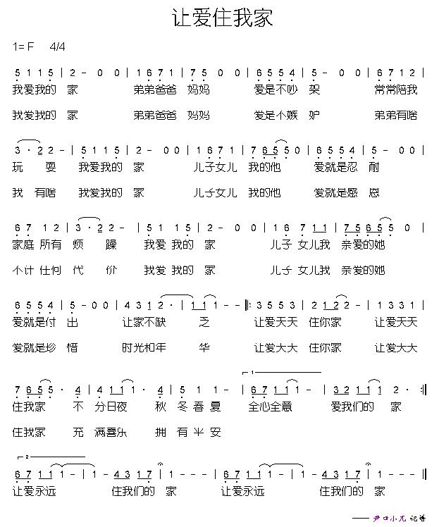 让爱住我家 简谱 曲谱