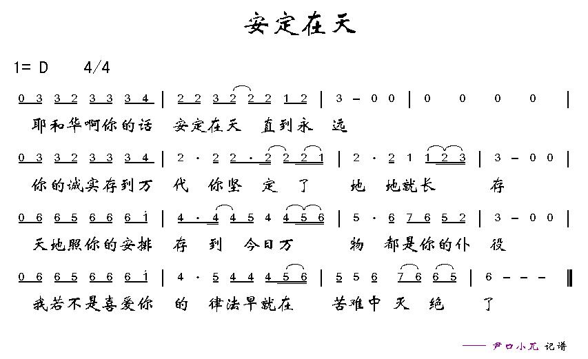 安定在天 简谱 曲谱