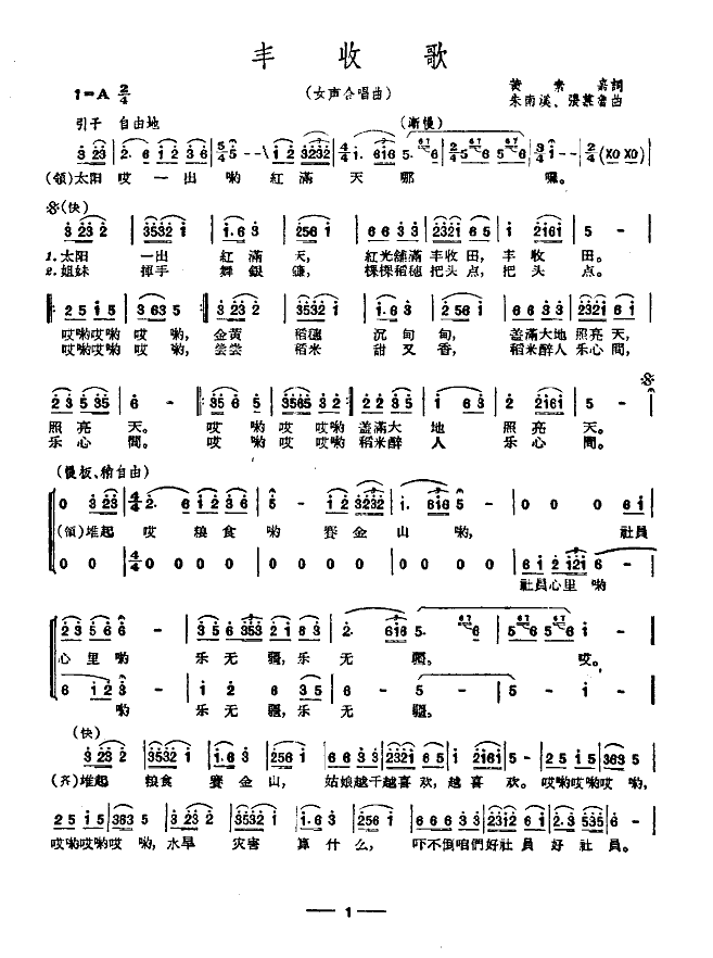 丰收歌(女声合唱) 简谱 曲谱