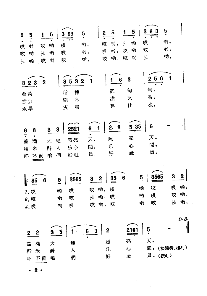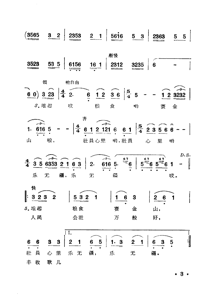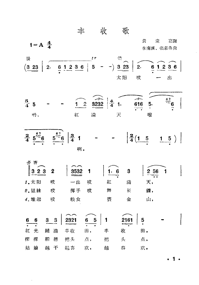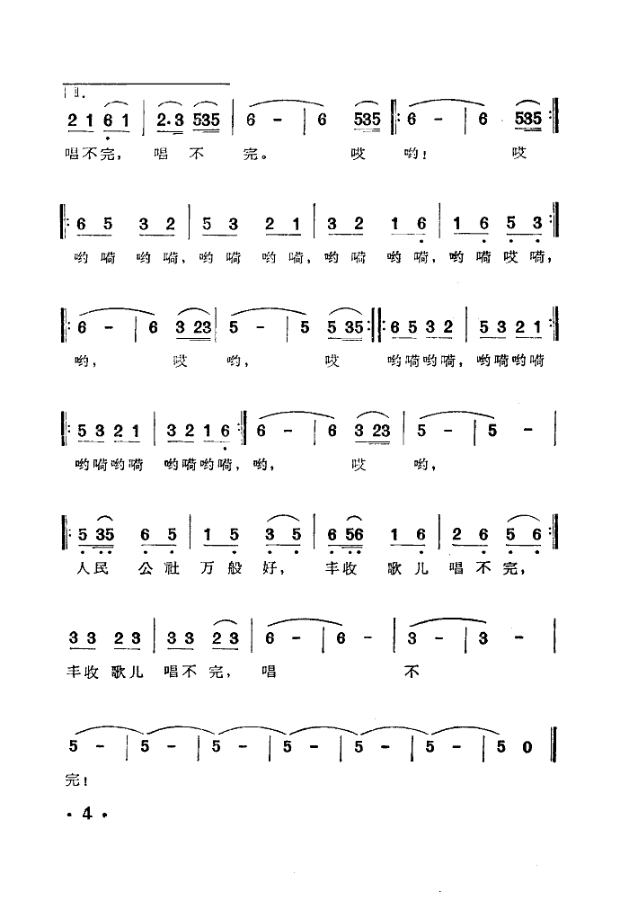 丰收歌 简谱 曲谱