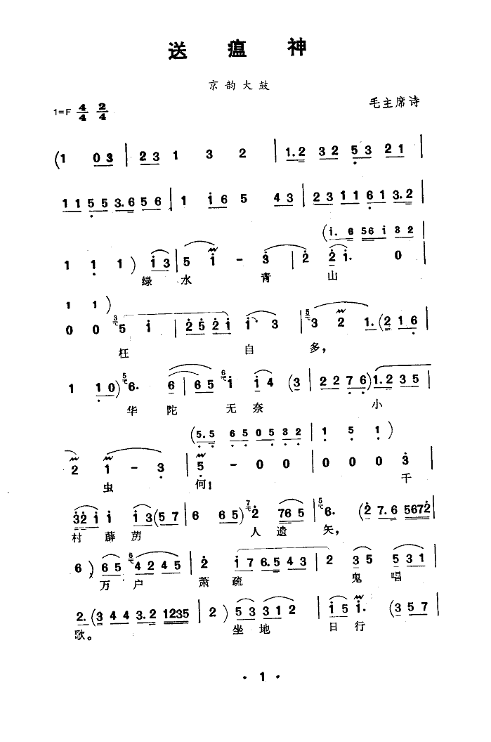 万岁人民中国 万岁毛主席 简谱 曲谱