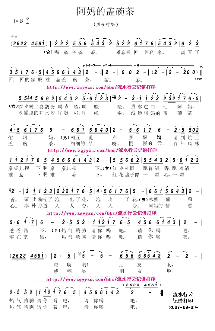 阿妈的盖碗茶 简谱 曲谱
