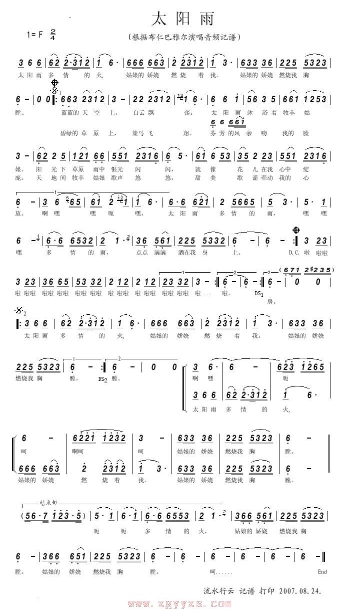 太阳雨 简谱 曲谱