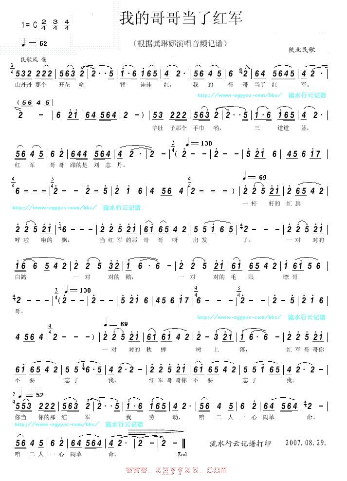 我的哥哥当了红军 简谱 曲谱