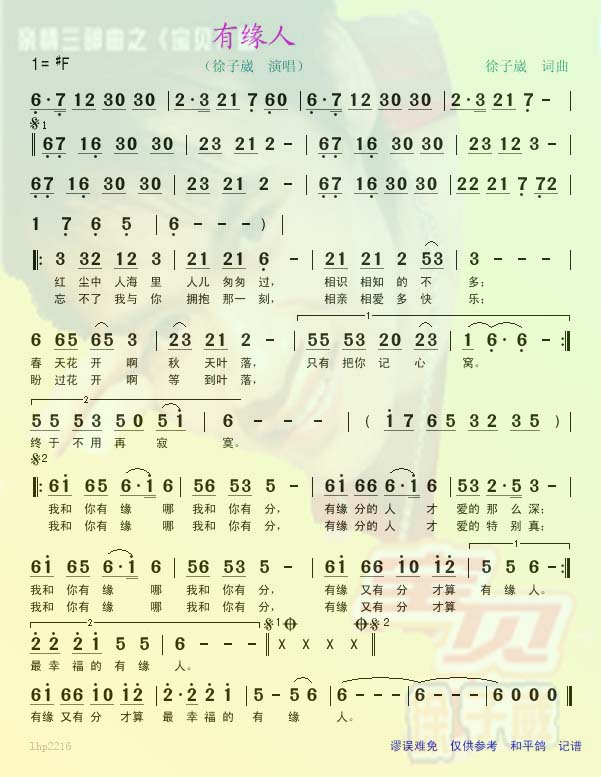 有缘人 简谱 曲谱