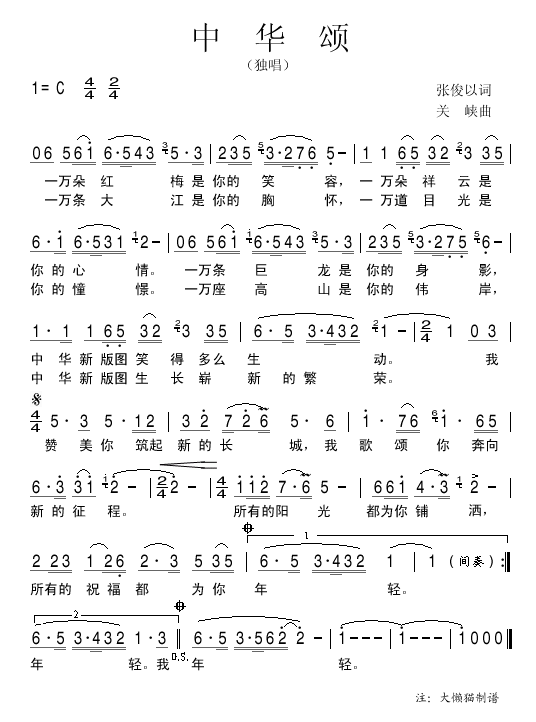 中华颂 简谱 曲谱
