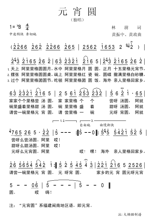 元宵圆 简谱 曲谱