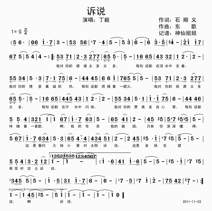 诉说 简谱 曲谱