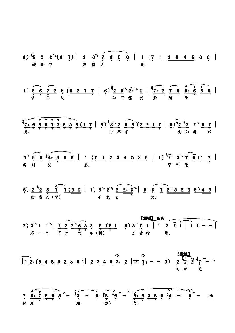 儿自幼薄母训颇知礼仪 简谱 曲谱