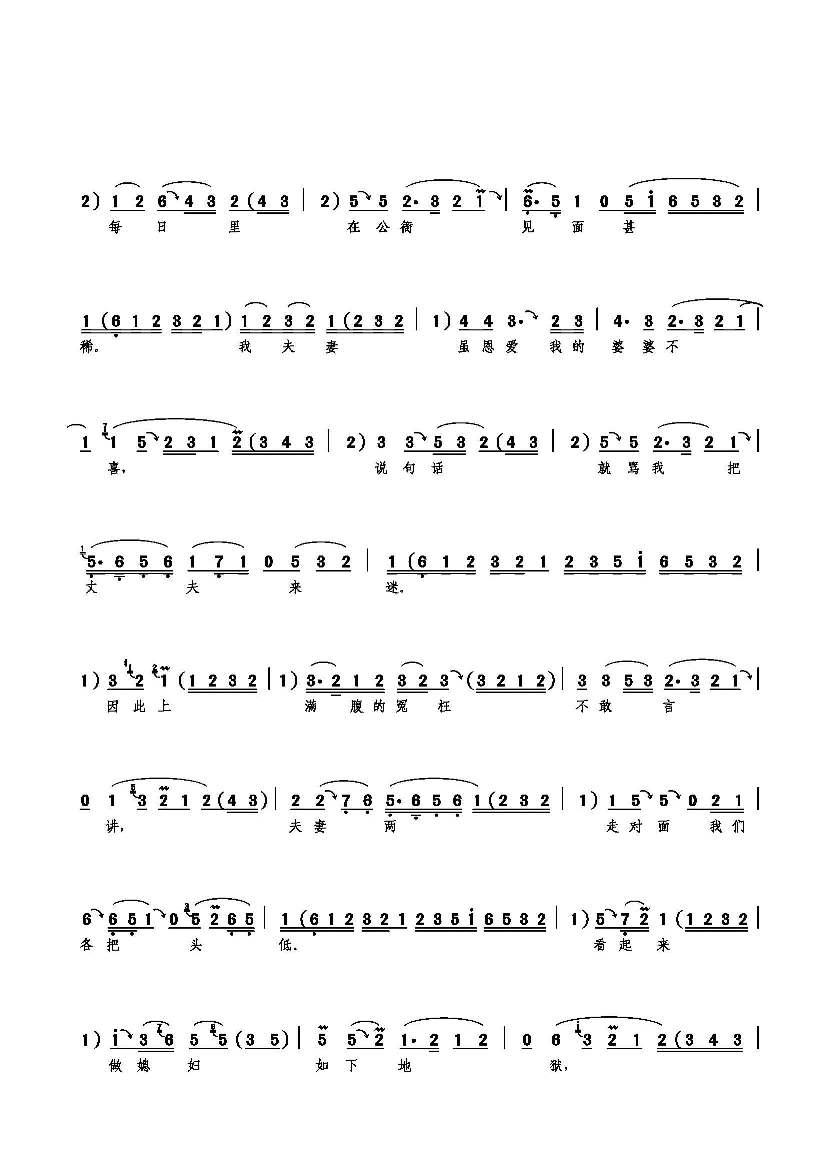 李香莲进书房破口大骂 简谱 曲谱