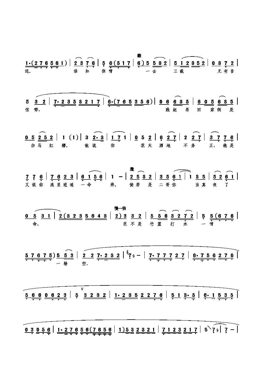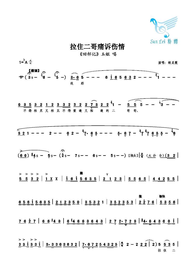 拉住二哥痛诉伤情 简谱 曲谱