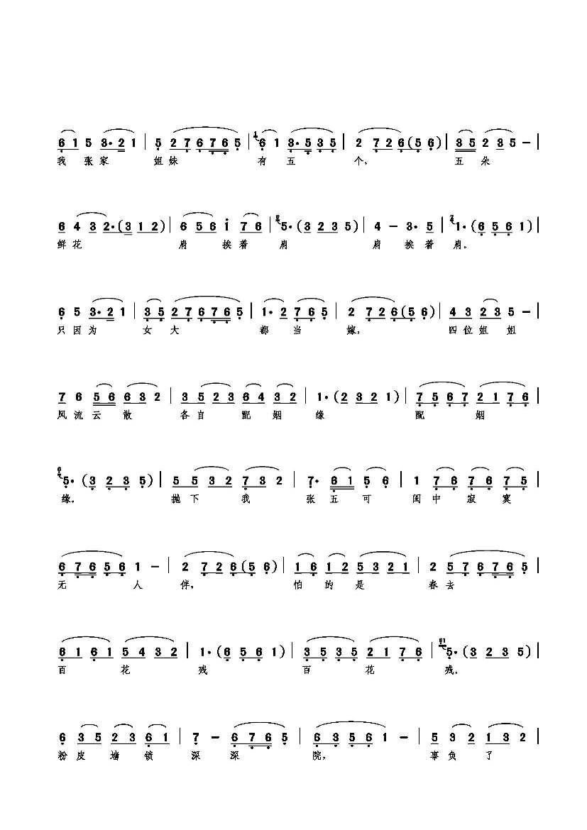 李月俄遮衫袖 简谱 曲谱