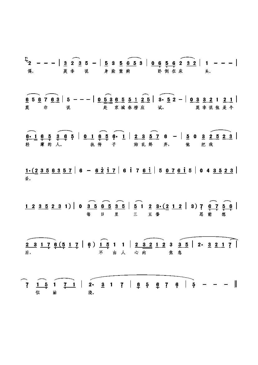 卜巧珍立窗前闷闷悠悠 简谱 曲谱