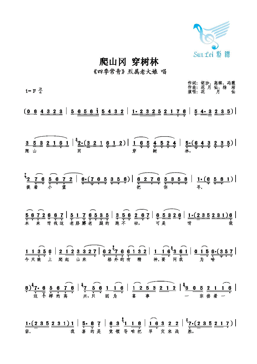爬山冈 穿树林 简谱 曲谱