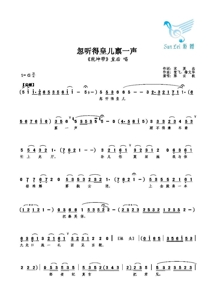 忽听得皇儿禀一声 简谱 曲谱