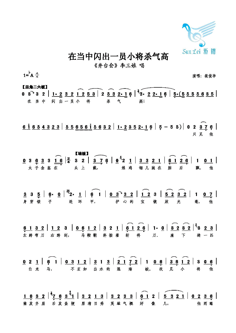 在当中闪出一员小将杀气高 简谱 曲谱