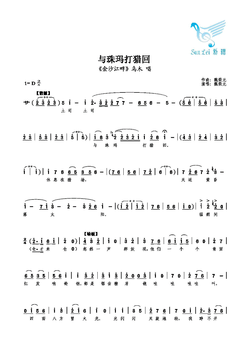 与珠玛打猎回 简谱 曲谱
