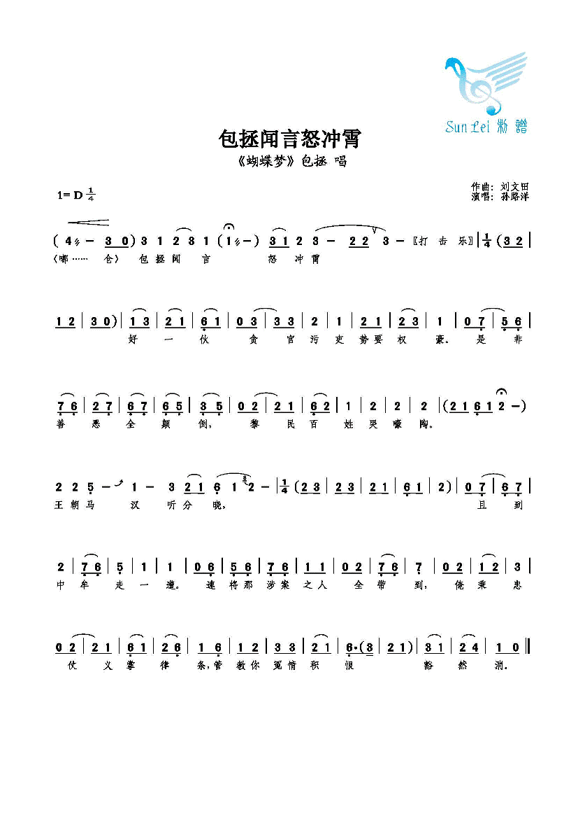 包拯闻言怒冲霄 简谱 曲谱