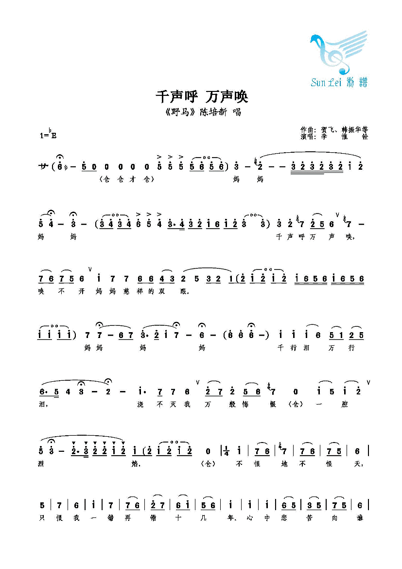 千声呼 万声唤 简谱 曲谱