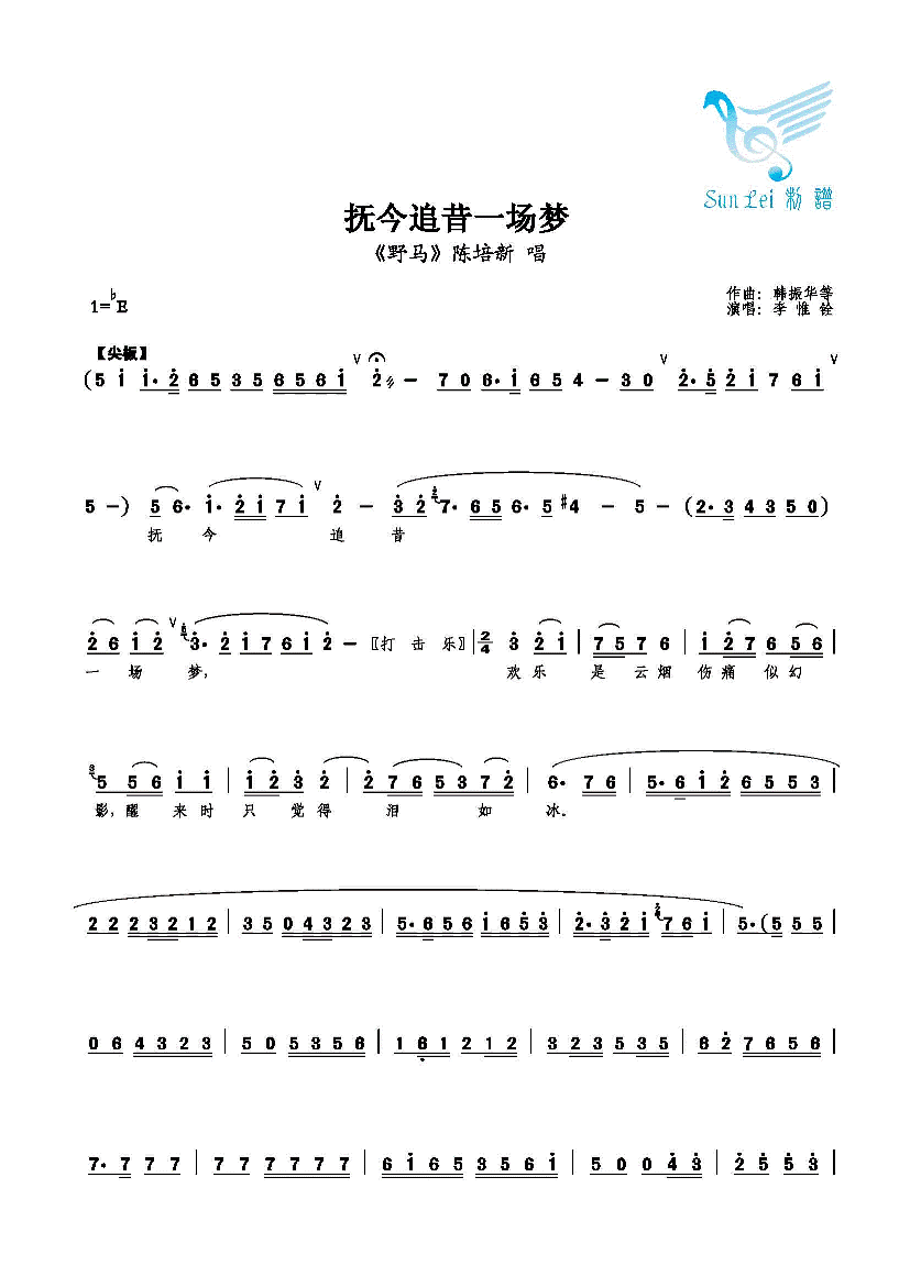 抚今追昔一场梦 简谱 曲谱