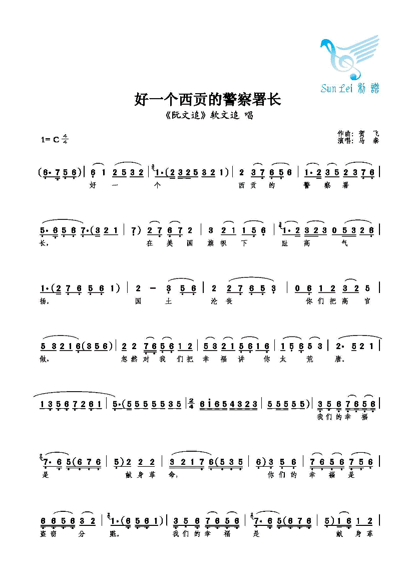 好一个西贡的警察署长 简谱 曲谱