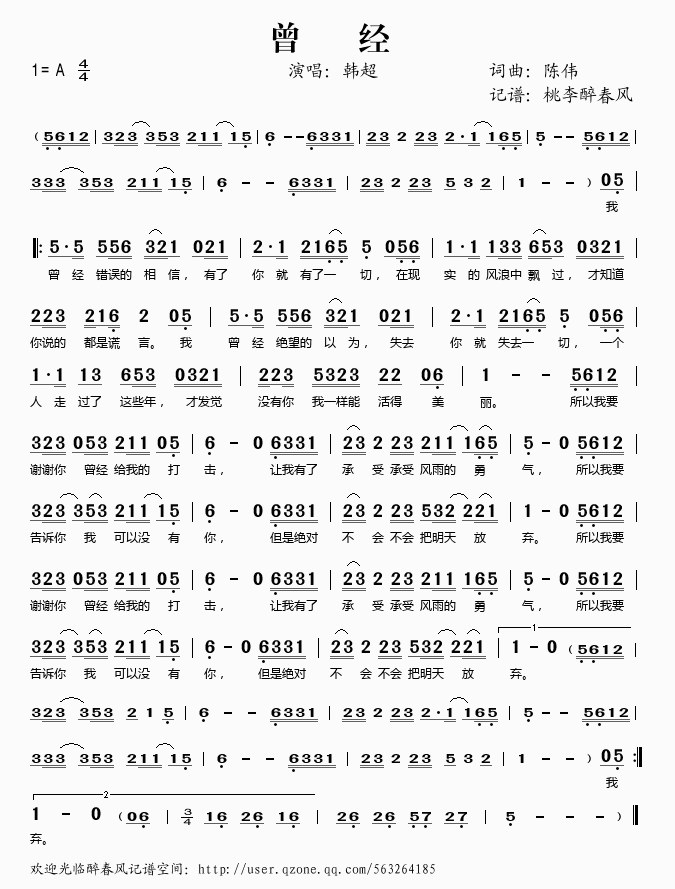 曾经 简谱 曲谱