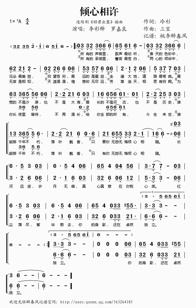 倾心相许 简谱 曲谱