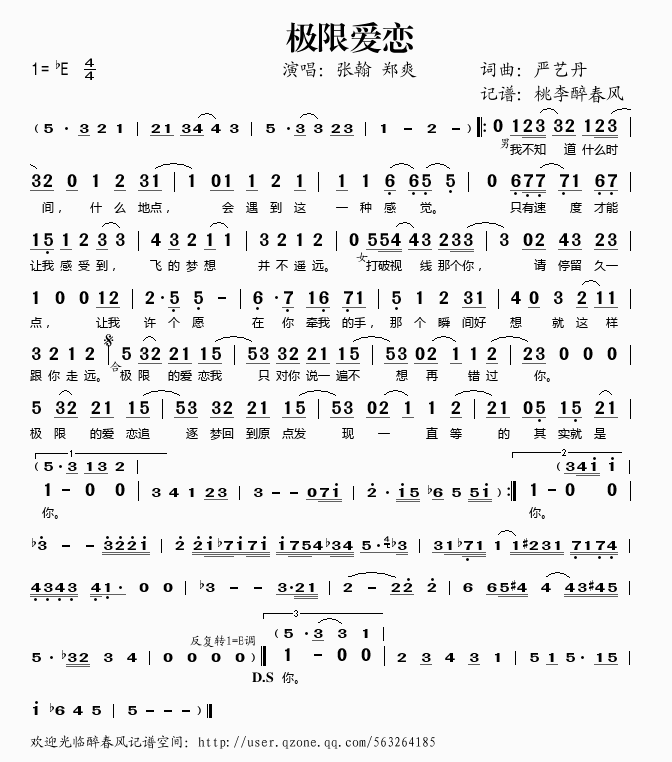极限爱恋 简谱 曲谱 歌谱