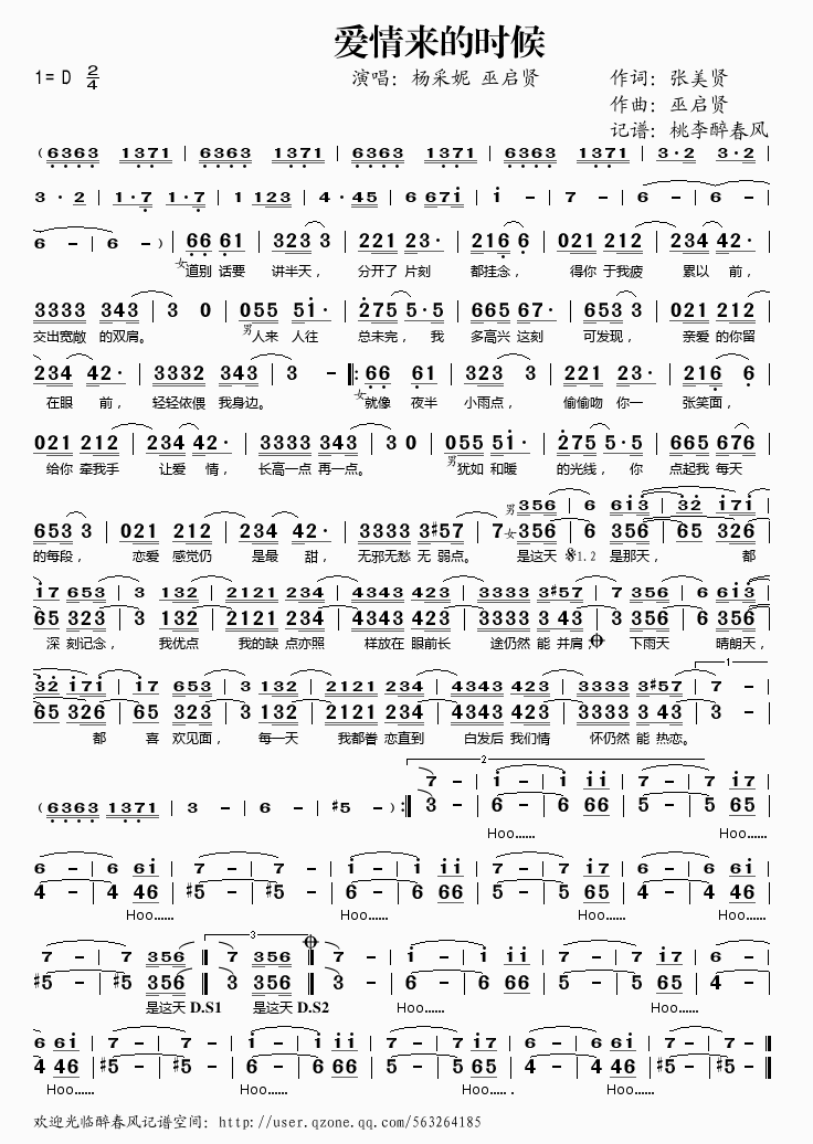 爱情来的时候 简谱 曲谱 歌谱