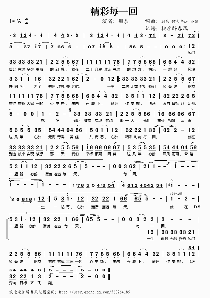 精彩每一回 简谱 曲谱 歌谱