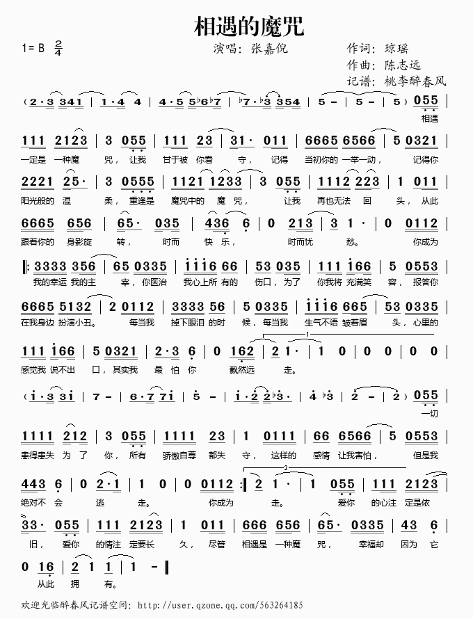 相遇的魔咒 简谱 曲谱 歌谱
