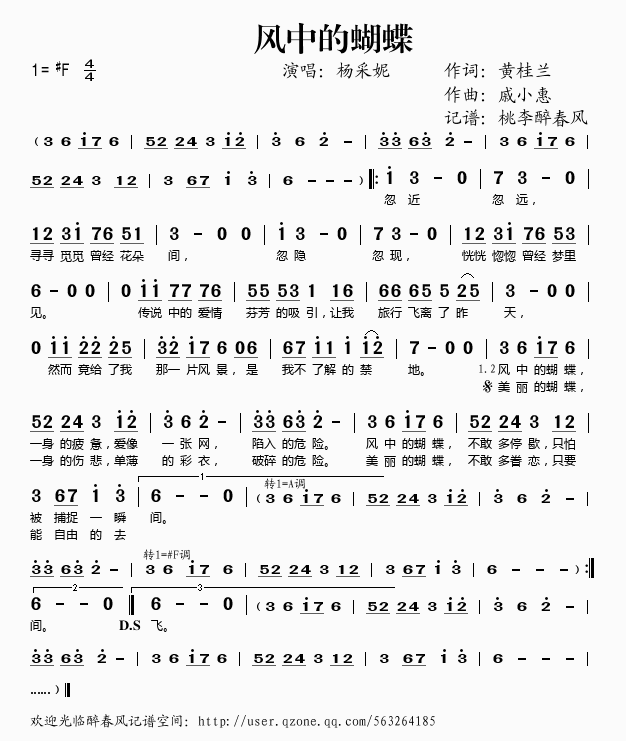 风中的蝴蝶 简谱 曲谱 歌谱