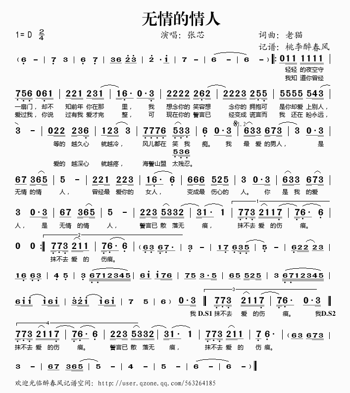 无情的情人 简谱 曲谱 歌谱