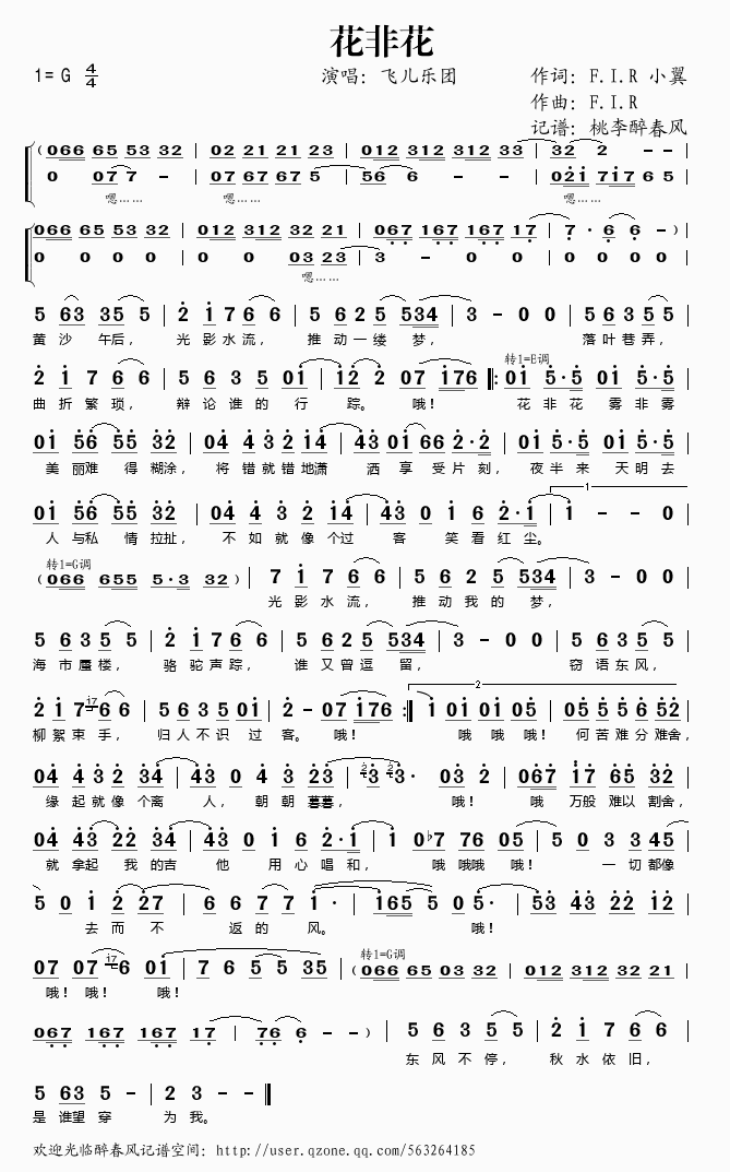 花非花 简谱 曲谱 歌谱