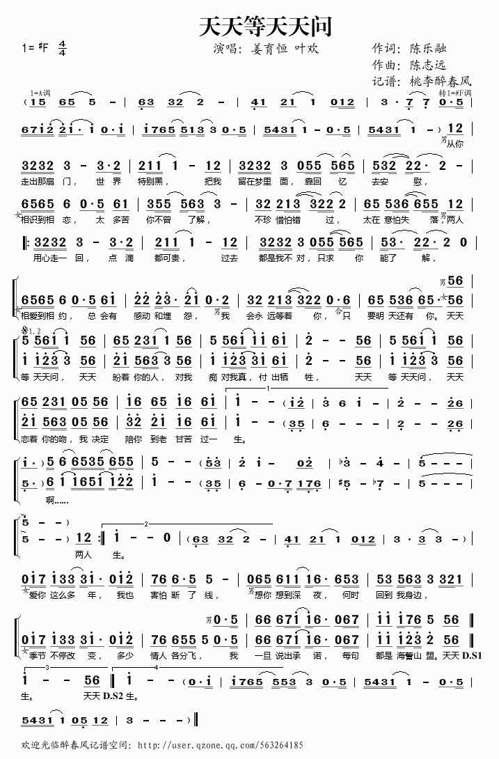 天天等天天问 简谱 曲谱 歌谱