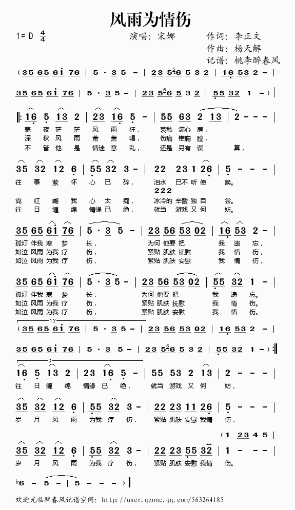 风雨为情伤 简谱 曲谱