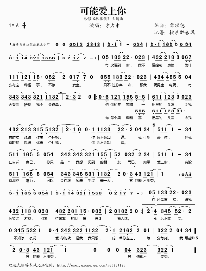 可能爱上你 简谱 曲谱