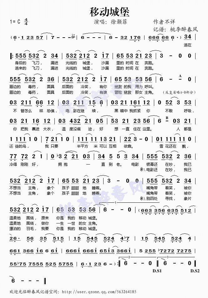 移动城堡 简谱 曲谱 歌谱