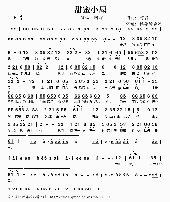 甜蜜小屋 简谱 曲谱 歌谱