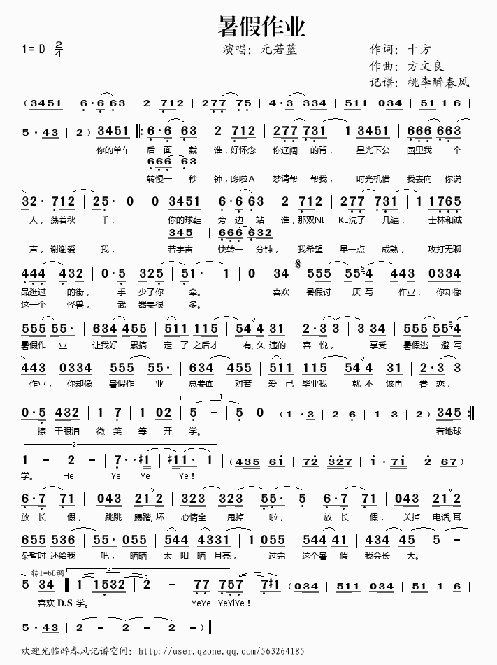 暑假作业 简谱 曲谱 歌谱