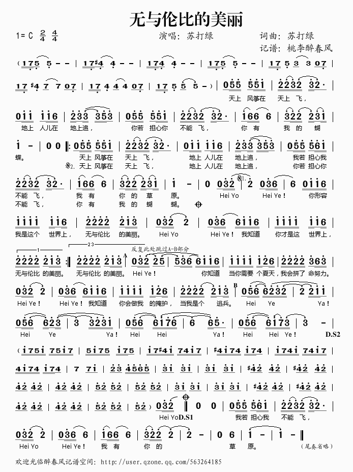 无与伦比的美丽 简谱 曲谱 歌谱