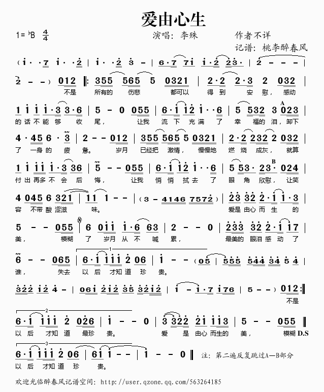 爱由心生 简谱 曲谱 歌谱