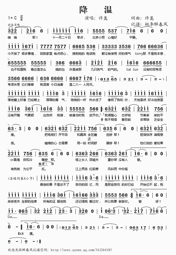 你的眷恋落进我的酒杯 简谱 曲谱 歌谱
