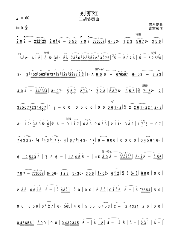 别亦难 二胡谱 曲谱 歌谱