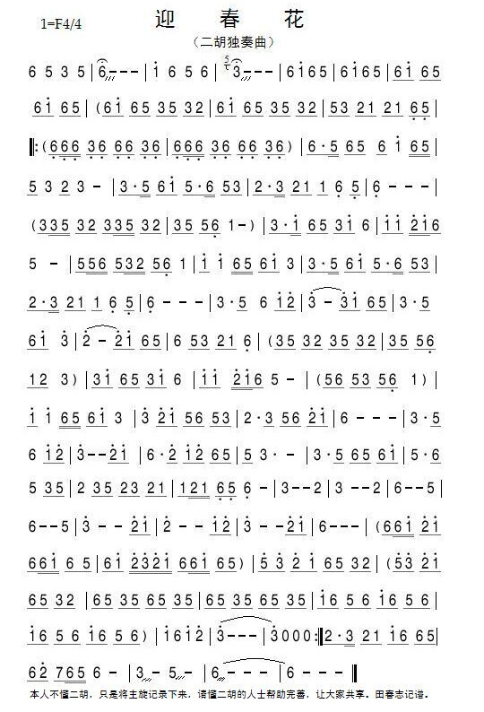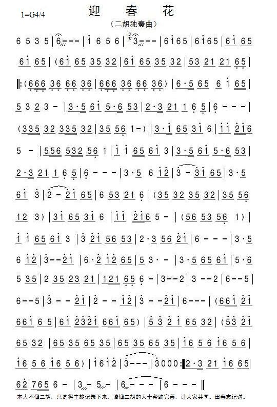 迎春花 二胡谱 简谱 曲谱