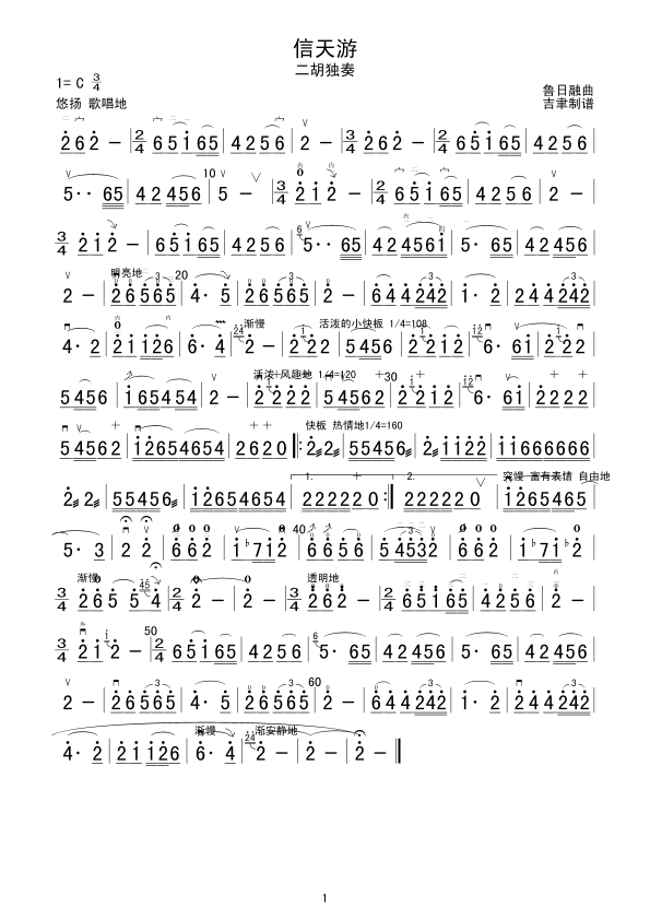 信天游 二胡谱 简谱 曲谱